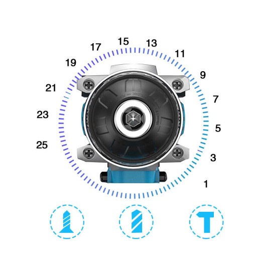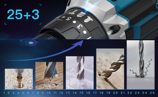 ✅Aby wiertło zaawansowanego momentu obrotowego 50 Nm, ustawienie obrotowego momentu 25+3 pozwala na zastosowanie.