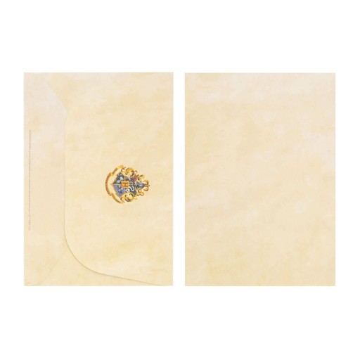 - 20 arkuszy papieru A5 - Każdy arkusz ozdobiony jest herbem Hogwartu, nadając Twoim listom autentyczny charakter.