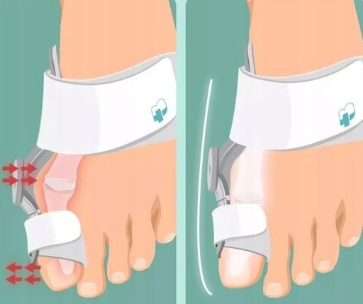 Koryguje ułożenie dużego palca stopy (leczenie zachowawcze i pooperacyjne).