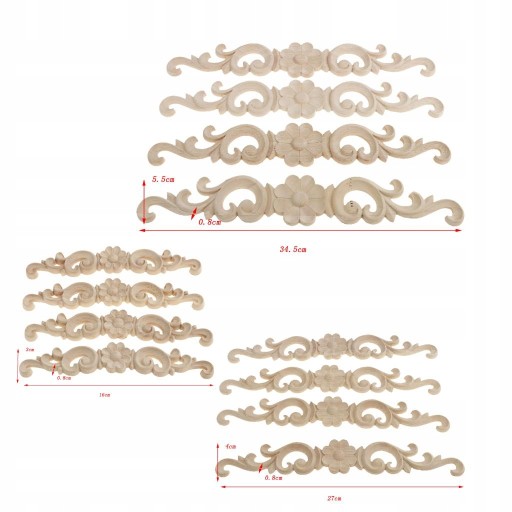 3x4 szt. Niemalowana aplikacja Rzeźbione w drewnie meble narożne Decor 16X3X0,8 cm