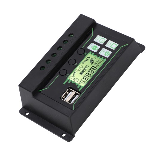 1、12V 24V SELF ADAPTION: The solar charge controller is compatible with 12V and 24V systems, the discharge current is 20A, has dual 5V 2A USB output. 2、AUTO MANAGEMENT: The solar controller has built in industrial micro controller for automatic management, can store various parameters set by users, and data will not be lost when the battery runs out. 3、FUNCTIONAL LCD: The solar panel regulator is easy to install and operate, intuitive LCD can clearly display status and data, and can switch modes and parameter configurations. 4、PWM CONTROL: The controller adopts three stage PWM regulate charging mode: direct charging, lift charging, floating charging, achieve efficient and fast intelligent charging. 5、MULTIPLE PROTECTION: Built in overcurrent, short circuit, reverse connection, open circuit protection, automatic recovery, no damage to the controller, reliable for your equipment.