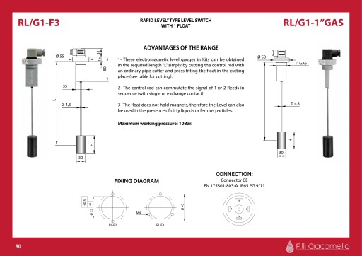 Wskaźnik poziomu RL/G1-F3-S2 A=500mm + zestaw montażowy (5 el.) - F.lli Gia