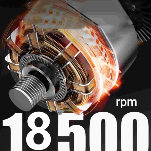 【Wysoka wydajność】 Wyposażony w szybki silnik bezszczotkowy pracujący z prędkością 18500 obr./min, silnik charakteryzuje się minimalnymi wibracjami i może pochwalić się dłuższą żywotnością. Silnik ma otwarty otwór wentylacyjny w pozycji roboczej, co zapewnia wysokie odprowadzanie ciepła i zapobiega pracy maszyny przed przegrzaniem i wypaleniem.