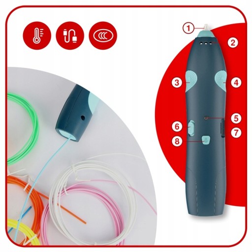 2️⃣Włącz długopis - długopis współpracuje z filamentem niskotemperaturowym (PCL)- długopis nagrzeje się do odpowiedniej temperatury