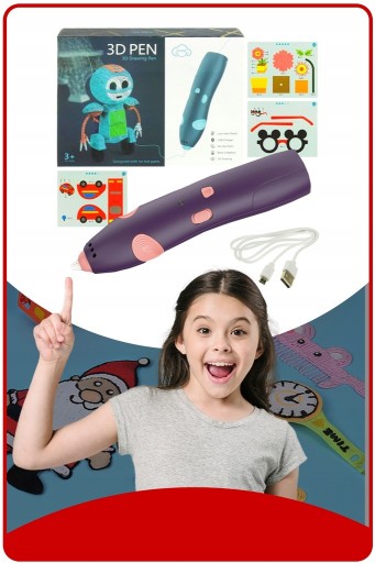 ⭐DŁUGOPIS DRUKARKA 3D PEN BEZPIECZNY ZESTAW + WZORY FIOLETOWY⭐