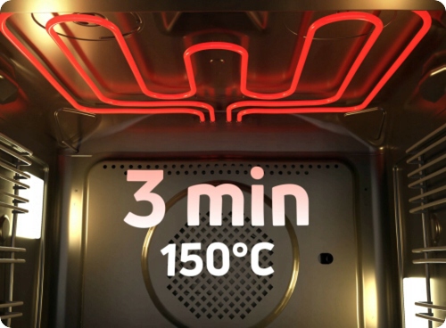 Jesteś w ciągłym biegu i na wszystko brakuje Ci czasu? Funkcja umożliwia bardzo szybkie nagrzanie piekarnika do wybranej temperatury. Dzięki jednoczesnemu wykorzystaniu grzałki grillowej, grzałki kołowej i wentylatora, piekarnik osiąga 150°C w zaledwie 3 minuty! Możesz go włączyć chwilę przed przystąpieniem do pieczenia i mieć pewność, że ze wszystkim zdążysz na czas!