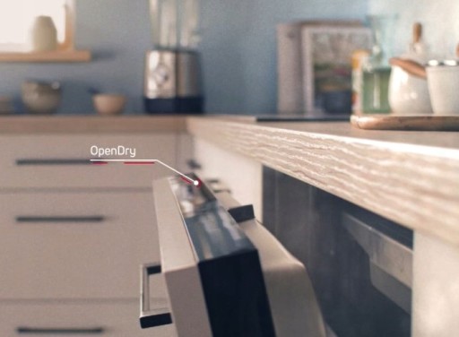 OpenDry to koniec wycierania niedosuszonych naczyń! Automatycznie uchylane drzwi po zakończonym cyklu zmywania sprawiają, że naczynia szybko i naturalnie doschną. Jest to rozwiązanie w pełni bezpieczne — wydobywające się ze zmywarki wilgotne powietrze ma temperaturę max. 40°C, zatem nie skrapla się na meblach i nie spowoduje żadnej szkody. To komfort użytkowania oraz mniejsze zużycie energii.