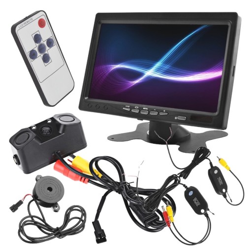 Samochodowy monitor zagłówkowy lub wolnostojący 7" z kamerą cofania i modułem bezprzewodowym do kamery