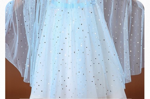 Elegancka peleryna księżniczki dla dziewczynek: 1 warstwa tiulu, ozdobiona błyszczącymi gwiazdkami i księżycem, a kołnierz peleryny jest zaprojektowany ze złotym paskiem, aby zapobiec spadaniu szala, jest lekki i bardzo łatwy w noszeniu. i startuj. Idealny do robienia zdjęć, występów na scenie, noszenia na co dzień i nie tylko.
