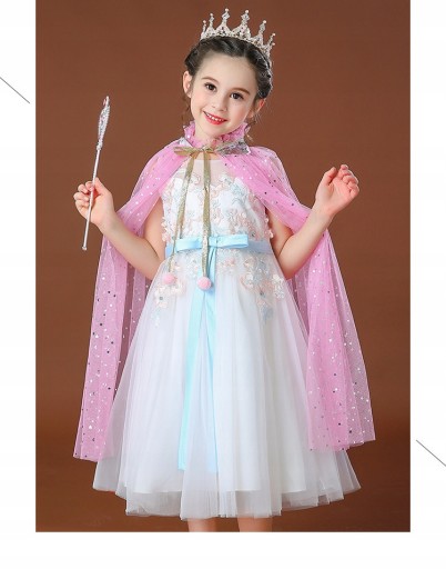 Rozmiar ok: peleryna księżniczki ma około 75 cm długości, odpowiednia dla dzieci o wzroście 110 cm-140 cm. Może być używany jako zwykły płaszcz do codziennego noszenia dla dziewczynek lub jako doskonały dodatek do wielu strojów księżniczki, które sprawią, że twoja dziewczyna będzie bardziej urocza i czarująca. Zalecany wiek: 3 lata i więcej.