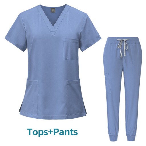 Rozciągliwy strój pielęgniarki medycznej Zestaw litery V,spodniami damskimi