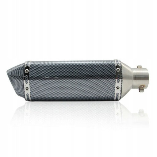 Uniwersalny sportowy wydech wykonany ze staliDB killerObejma do mocowania wydechu chrom (na zdjęciu z niebieską folią zabezpieczającą)Opaska gumowa zabezpieczająca przed porysowaniemSprężyny mocujące - 2 sztukiPrzejściówka mocująca z 51 mm na 38 mmKolor tłumika CarbonWymiary :