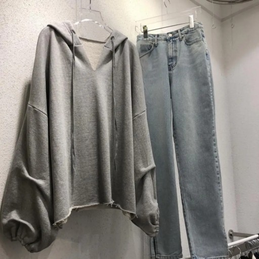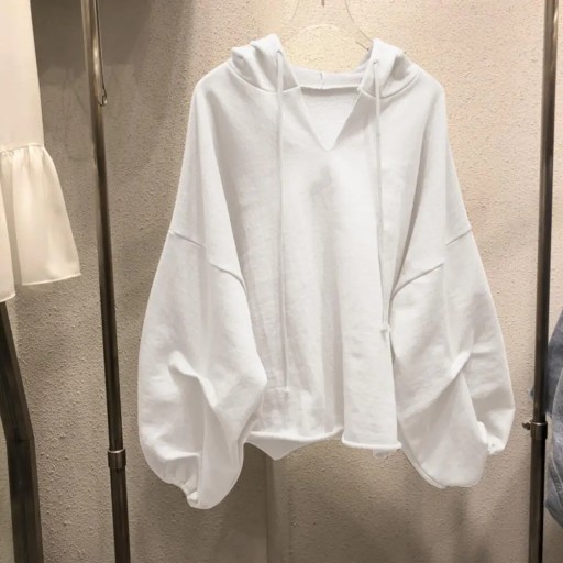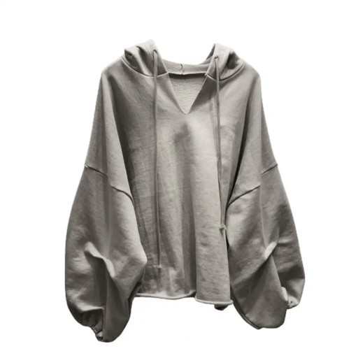 Solid Color Drawstring Pullover Hoodie Autumn Batwing Sleeve V-Neck Women Sweatshirt Streetwear