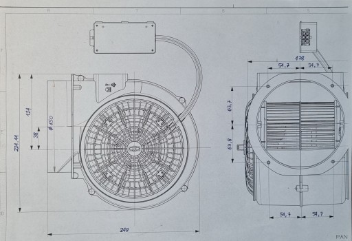 silnik: 150 W/ 230V- wydajność 500 m3/h , trzy prędkości obrotowe.