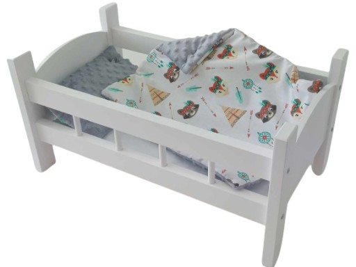 BIAŁE DREWNIANE ŁÓŻECZKO Z KOMPLETEM POŚCIELI DLA LALEK