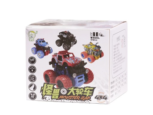 Duże gumowe opony pokonają niemal każdą przeszkodę. Wyposażony w napęd, dzięki któremu nadasz mu przyśpieszenia za pomocą jednego pchnięcia. A co ciekawe ten samochód jeździ również do tyłu.
