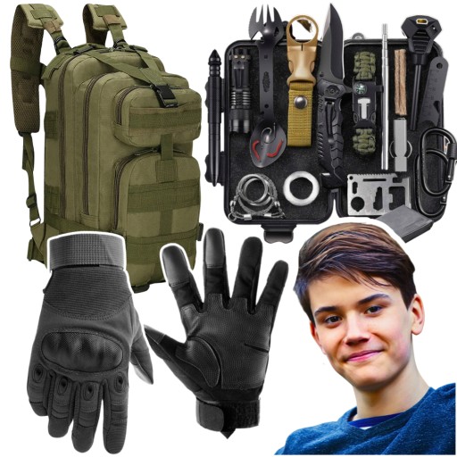 BESTSELLEROWY ZESTAW SURVIVALOWY 2024 + PLECAK TAKTYCZNY + RĘKAWICE OCHRONNE