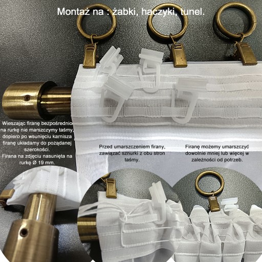 - sposób montażu: żabki, haczyki, tunel.