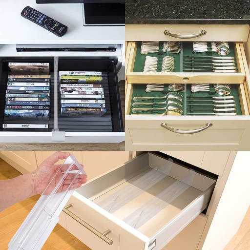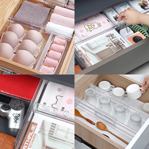 Użyj ich, aby stworzyć niestandardowe miejsce do przechowywania szuflad w dowolnym miejscu. Idealne do organizowania przegródek szuflad i łatwego znajdowania potrzebnych przedmiotów. Idealne do organizowania szuflad na śmieci, ubrań, przyborów kuchennych, artykułów biurowych, makijażu, bałaganu w łazience i nie tylko.