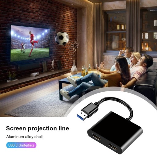 Konwerter kompatybilny z USB HDMI 1920x1080p @ 60Hz USB3.0 na podwójny HDMI-kompatybilny z jeden do dwóch adapterów wyświetlacza na ekranie Cechy: 1. Dotyczy: adapter ma zastosowanie do porównywania danych, monitorowania efektów i innych pól.2. Sposób użycia: adapter może uzyskiwać obrazy audio i wideo w wysokiej rozdzielczości za pośrednictwem interfejsu USB komputera i jednocześnie wyświetlać dwa różne obrazy.3. Wsparcie: wsparcie dla Windows 7/8/8.1/10, XP (32bit), Vista (32bit) MAC OS.4. Wsparcie 1 kanał 3.5mm wyjście stereo: wsparcie 1 kanał 3.5mm wyjście stereo.5. Materiał: adapter wykonany jest z wysokiej jakości materiałów i jest trwały.Dane techniczne:Typ: kompatybilny z USB do HDMIRozdzielczość wyjściowa: maksymalnie 1920*1080p przy 60HzPrędkość transmisji: 5 gb/sInterfejs: USB 3.1, 2 * kompatybilny z HDMILiczba połączeń gwintowanych: jeden na dwaMateriał: ABSKolor: czarnyZawartość opakowania:1 x adapter kompatybilny z USB do HDMITylko powyższa zawartość opakowania, inne produkty nie są uwzględnione.Uwaga: odbicie światła i różne wyświetlacze mogą spowodować, że kolor przedmiotu na zdjęciu będzie trochę inny niż rzeczywisty. Błąd pomiaru wynosi /- 1-3cm.