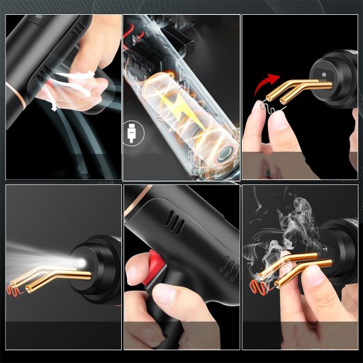 - W porównaniu z tradycyjnym spawaniem plastiku dostępnym na rynku, nasz pistolet spawalniczy do plastiku został ulepszony do konstrukcji bezprzewodowej, dzięki czemu nie musisz się już martwić o uzwojenie cewki, niewystarczającą długość przewodu i inne problemy. Nasz pistolet spawalniczy wykorzystuje baterię o dużej pojemności 5000 mAh. Pełne naładowanie zajmuje około 3 godzin, a po pełnym naładowaniu. 400-500 gwoździ spawalniczych