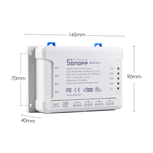 Samoblokujący tryb pozwala na natychmiastowe włączenie/wyłączenie 4 podłączonych nośników światła. Użytkownicy mogą zdalnie obsługiwać podłączone urządzenia przez darmową aplikację eWeLink dostępną na platformach iOS i Android lub pilotem radiowym RF 433 MHz. Możliwa jest także obsługa głosowa oraz współpraca z inteligentnymi asystentami, dzięki zgodności z Amazon Alexa, Amazon Echo, Echo Dot, Amazon Tap, Google Assistant, Google Home, Google Nest, IFTTT.
