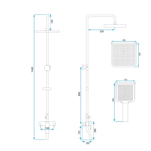 - Skład zestawu: Bateria, wąż prysznicowy ze słuchawką, deszczownica