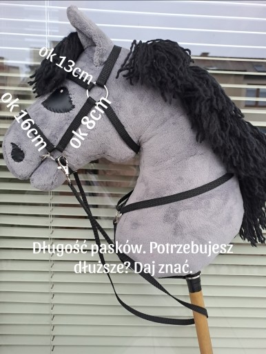 - Regulowane klamrami, dłuższe paski pozostawiono do samodzielnego przycięcia po dopasowaniu do swojego hobby horse.