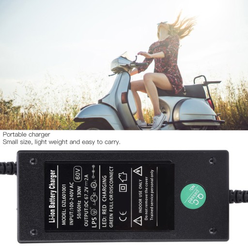 60V 12AH plastikowa przenośna uniwersalna ładowarka do skutera elektrycznego DC67.2V 2A wtyczka EU 100-240V