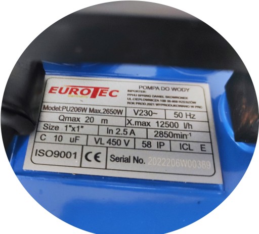 POMPA DO WODY BRUDNEJ I CZYSTEJ EUROTEC 2650W + WĄŻ 1" 20m gumowy