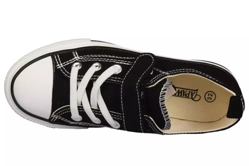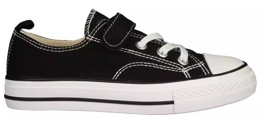 Tenisówki dziecięce firmy Clibee w czarnym kolorze. Stworzone zostały z wysokiej jakości materiałów tekstylnych w standardowym wzorze. Model ten zapinany jest na rzep, która zapewnia idealne dopasowanie obuwia do stopy. Dodatkowe gumy imitujące sznurówki dodają całości ciekawego charakteru. Trampki wyposażone zostały w gumowy nosek, który chroni stopę przed uderzeniami oraz otarciami. Gumowe podeszwy zapewniają maksymalną przyczepność do podłoża zapewniając bezpieczeństwo. Trampki dziecięce Clibee będą doskonałym wyborem obuwia do szkoły. Świetnie dopasują się do niemalże wszystkiego.