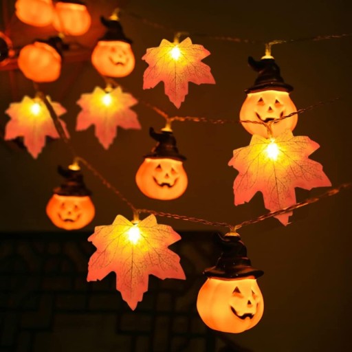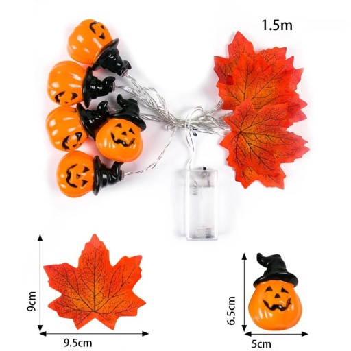 СВЕТОВАЯ ГИРЛЯНДИЯ СВЕТОДИОДНЫЕ ЛАМПЫ 1,5 М ЛИСТЬЯ ОСЕННИЕ ТЫКВЕННЫЕ УКРАШЕНИЯ НА ХЭЛЛОУИН