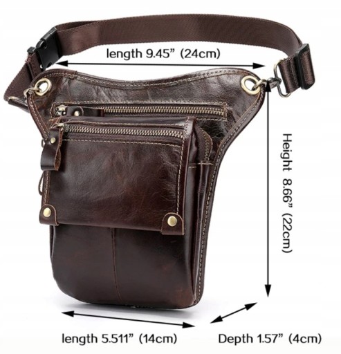 Saszetkę można nosić na biodrze dodatkowo drugim paskiem przypiąć do uda.