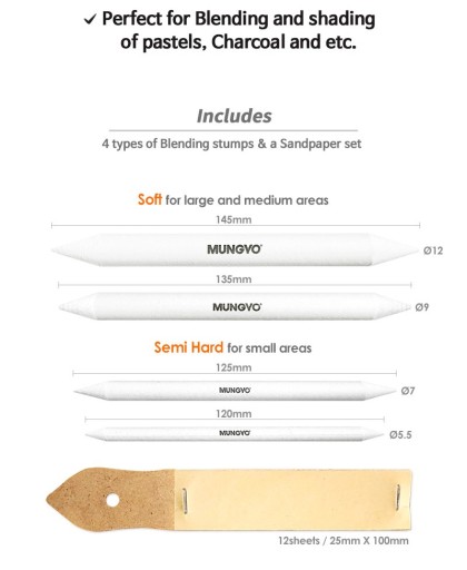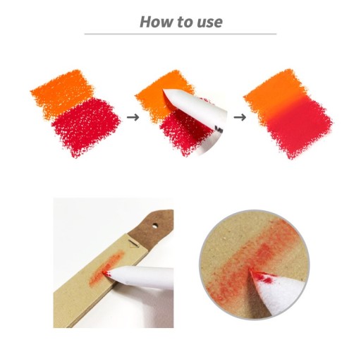 Blendery są wykonane w formie ołówka, ze ściśniętego, miękkiego papieru. Służy do rozcierania kredek,