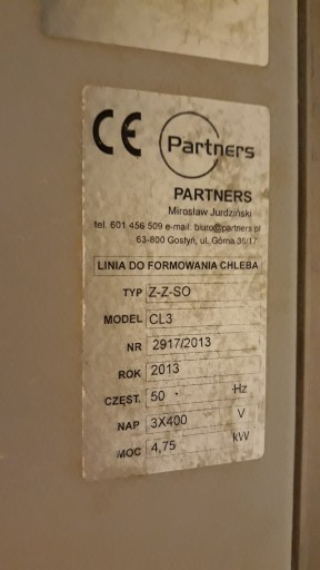 Urządzenie jest sprawne w dobrym stanie, użytkowane w profesjonalnym zakładzie piekarniczym.