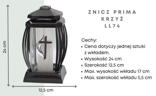 Znicz Prima 1 Wysoki Czarny Połysk Czarny Krzyż Srebrne Zdobienie LL74