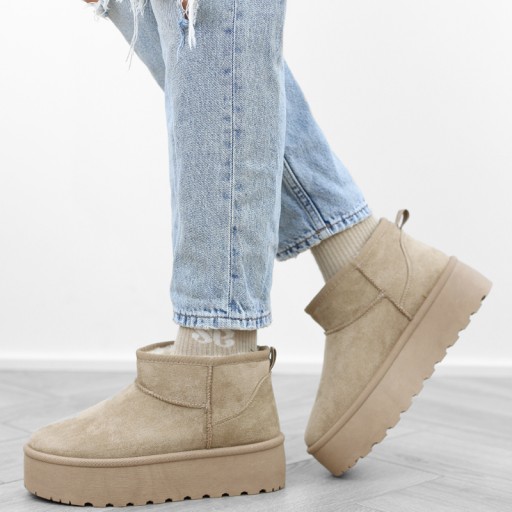 Khaki beżowe botki damskie na platformie niskie mukluki