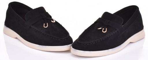 KLASYCZNE MOKASYNY DAMSKIE MATERIAŁOWE KOKARDA