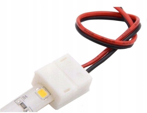 Złączka to wysokiej jakości złącze do jednokolorowych wodoodpornych taśm LED. Łączenie taśmy z zasilaniem lub odbiornikiem za pomocą złączki nie wymaga lutowania - złączka " CLICK" przystosowana jest do łączenia wszystkich jednobarwnych wodoodpornych taśm LED o szerokości laminatu 8 mm. Wystarczy umieścić taśmę w złączce z jednej i z drugiej strony ściemniacz lub zasilacz i działa.