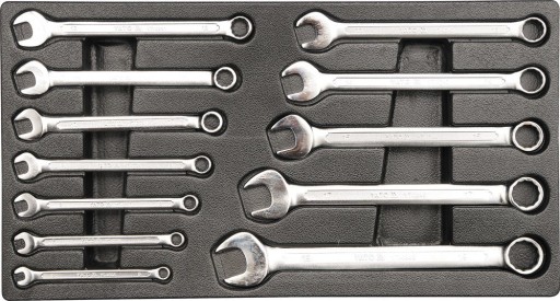 - Klucze płasko-oczkowe: 6, 7, 8, 9, 10, 11, 12, 13, 14, 15, 17, 19 mm