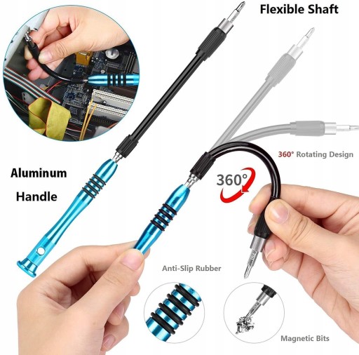 - 98 magnetycznych precyzyjnych bitów wykonanych z wysokiej jakości stali chromowo-wanadowej CR-V S2, charakteryzującej się wytrzymałością oraz sprężystością umożliwia rozkręcenie niemal każdego urządzenia