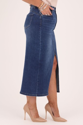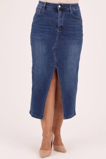 Spódnica damska jeansowa z modnym rozcięciem, które zwiększa swobodę ruchów.