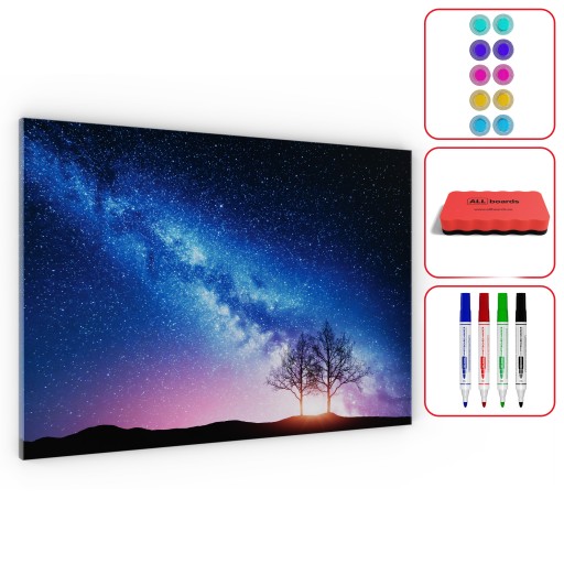 Tablica na magnesy METALboards, droga mleczna i drzewo 90x60 cm + zestaw akcesoriów GRATIS