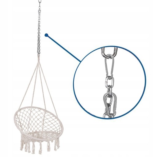 - mocny łańcuch- do przedłużenia odległości pomiędzy huśtawką, a sufitem- długość +/-