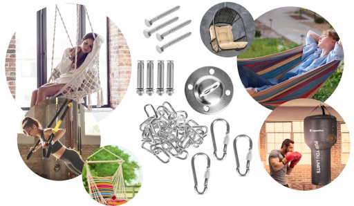 Profesjonalny, mocny zestaw do montażu foteli hamakowych.