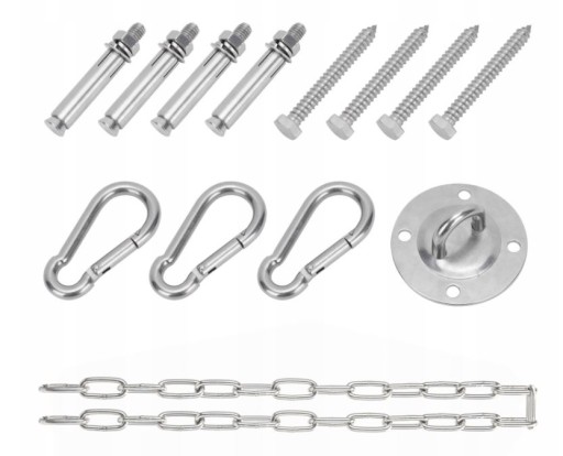 Metalowy, zestaw z łańcuchem do montażu hamaków brazylijskich, foteli, worków treningowych.
