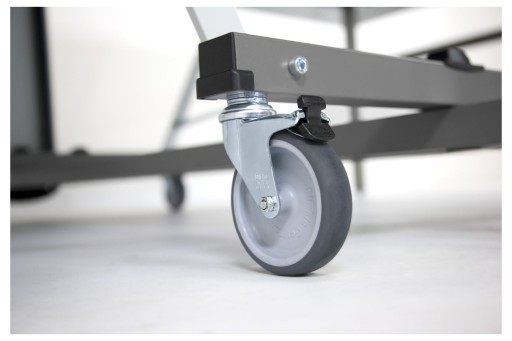 - 4 skrętne koła z bieżnikiem gumowym o średnicy 100 mm, 2 koła z możliwością zablokowania