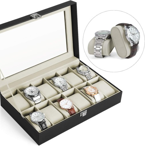 ⭐ 12 przegródek na zegarki z miękkimi poduszkami