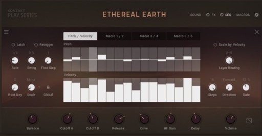 ETHEREAL EARTH ma na celu zrównoważenie intuicyjnej, ukierunkowanej na wydajność kontroli z dopracowanym dźwiękiem. Makra oferują szybką i dynamiczną kontrolę nad silnikiem syntezatora, umożliwiając bezproblemowe kształtowanie ustawień wstępnych i dostosowywanie własnych dźwięków. Dla tych, którzy chcą zagłębić się w projektowanie dźwięku, znajdziesz potężne narzędzia do edycji dźwięku i łańcuchy niestandardowych efektów, które zapewniają dalszą kontrolę i inspirację. ETHEREAL EARTH zawiera również analogowy sekwencer, który może tworzyć akordy, pasaże i melodyczne, rytmiczne wzory. Ostatecznie te narzędzia mają na celu wzmocnienie Cię we własnym tworzeniu dźwięku!