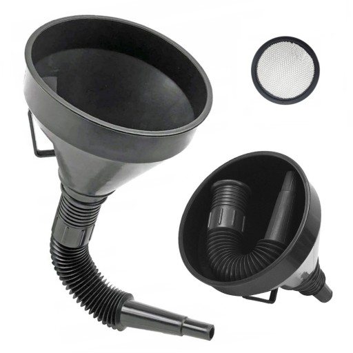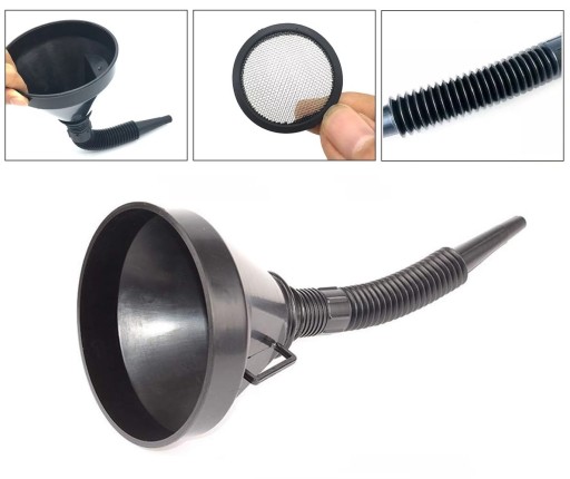 Górną część lejka (wlew) można stosować samodzielnie lub po podłączeniu do niej harmonijkowej rurki można zwiększyć komfort wlewania do trudniej dostępnych zbiorników.